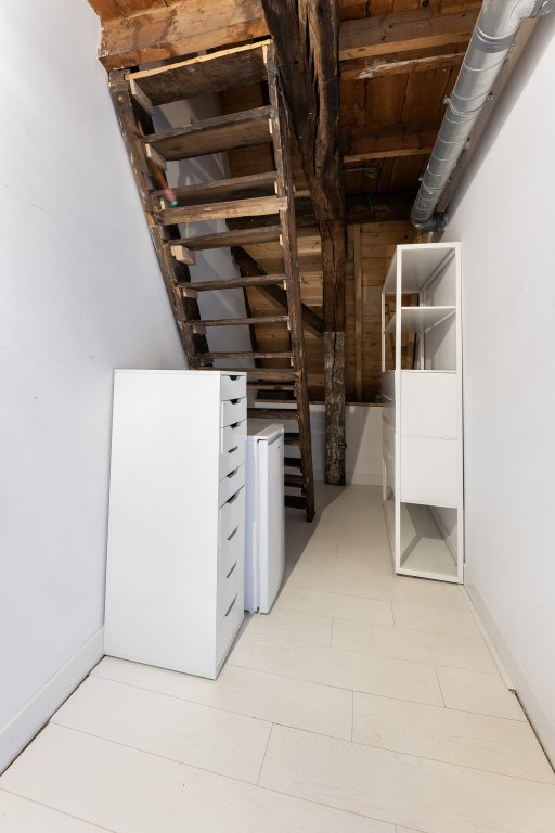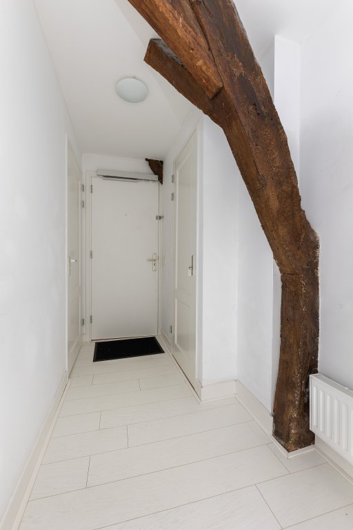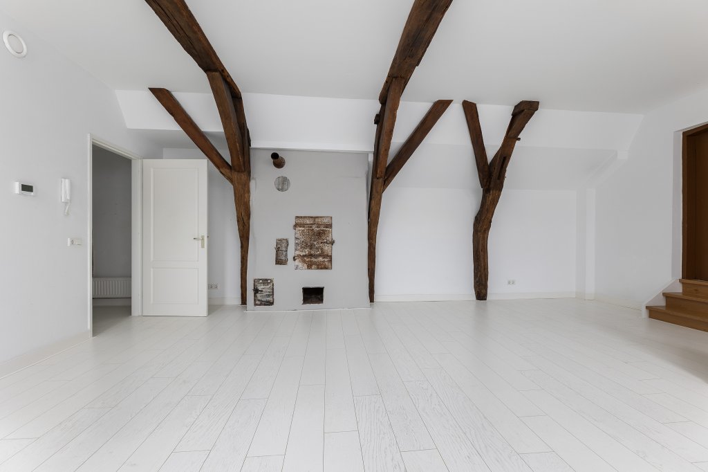 En dat merk je direct zodra je binnenstapt. Achter de monumentale gevel schuilt een speels ingedeeld appartement met een woonlaag en een royale bergzolder. De combinatie van hoge balken, lichte ruimtes en historische details zorgt voor een sfeer die je niet snel ergens anders vindt.