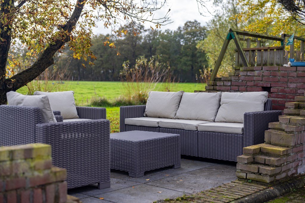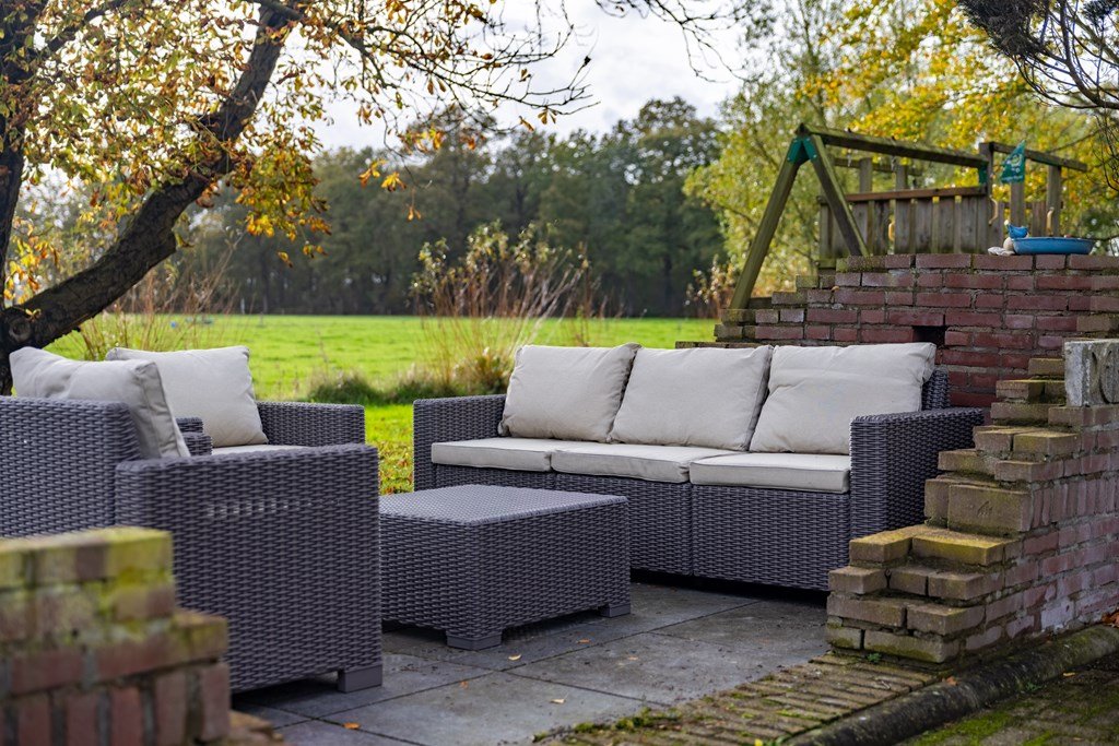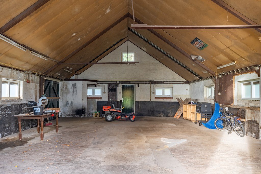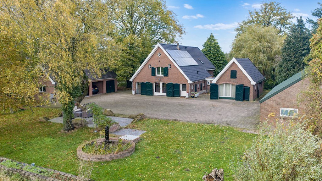 Rondom de woning ligt een fraai aangelegd en verzorgd erf met meerdere terrassen, volwassen bomen en volop privacy. De in 2018 gebouwde garage (6,5 × 5,2 m) met berging en vliering biedt ruimte voor meerdere auto’s en extra opslag. Daarnaast bevinden zich op het erf nog twee karakteristieke schuren van circa 11 × 7,75 m en 4,5 × 9 m met een overkapping, ideaal voor opslag, werkplaats of hobbymatig gebruik.
