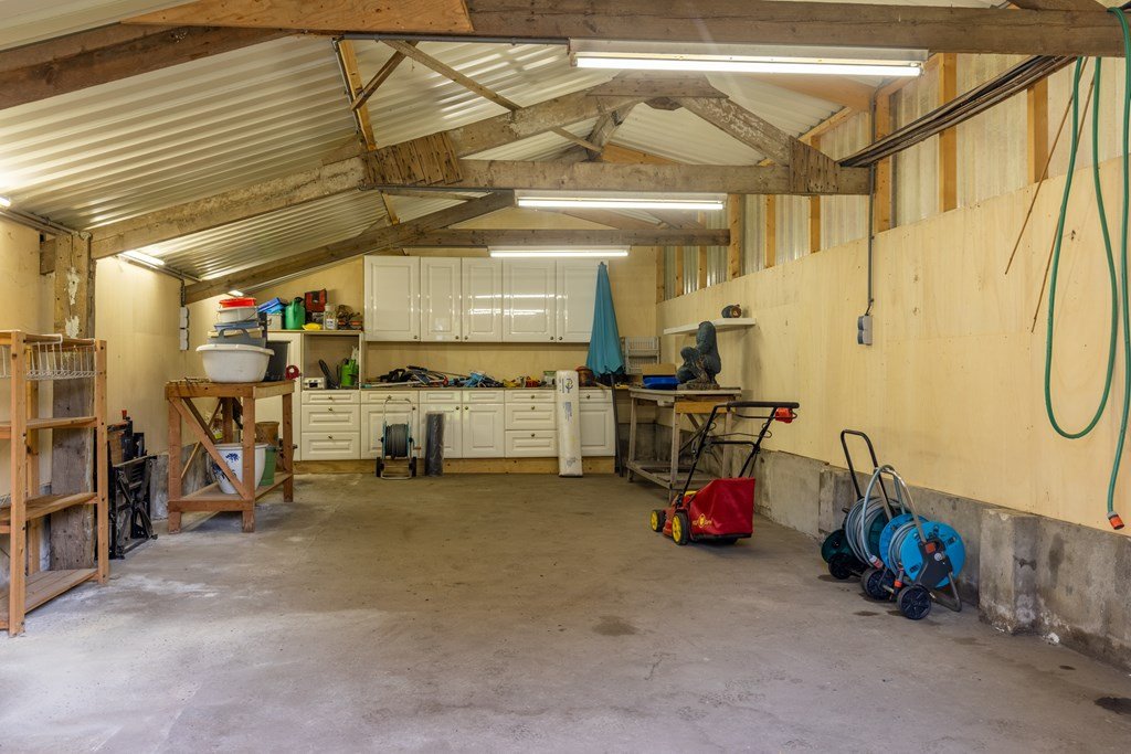 Bijgebouwen: garage met berging (2018) en twee schuren (11 × 7,75 m en 4,5 × 9 m)