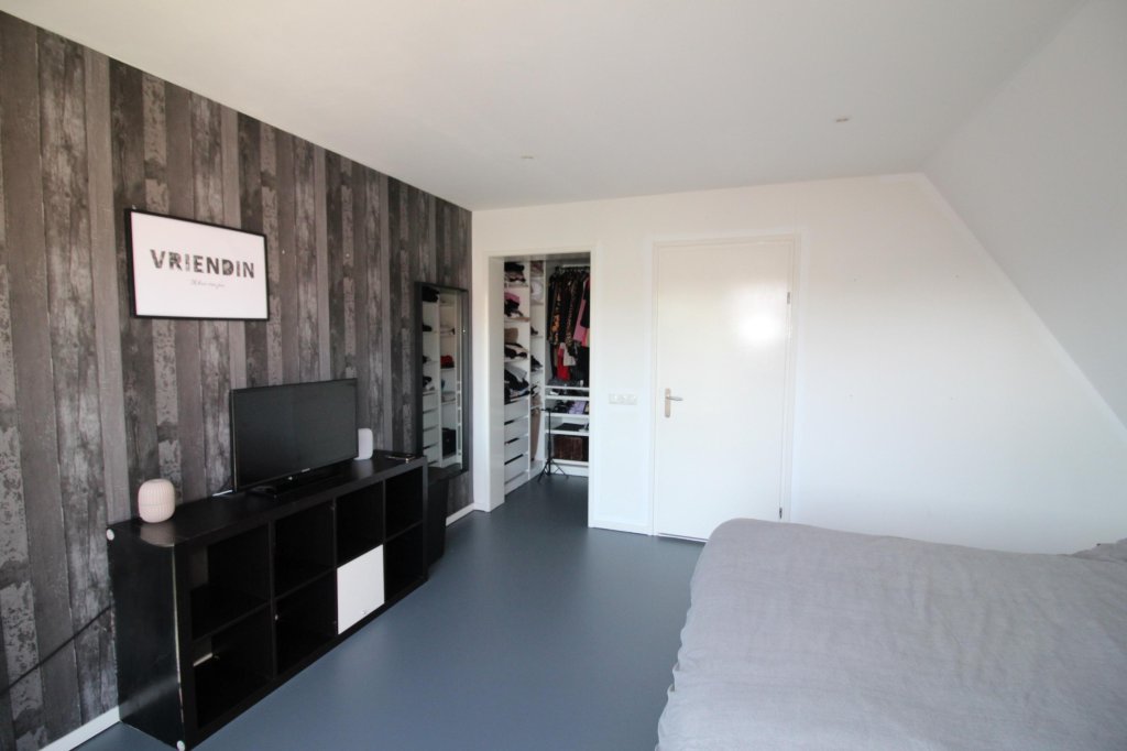 Eerste verdieping: Overloop, 2 slaapkamers waarvan 1 voorzien van een inloopkast en met een balkon.