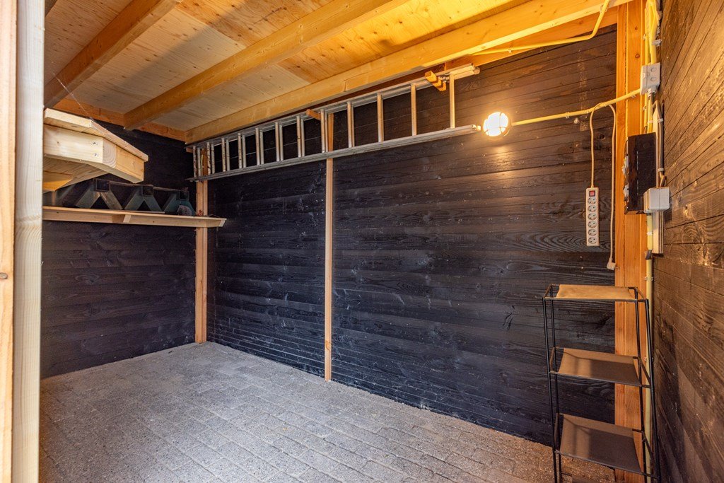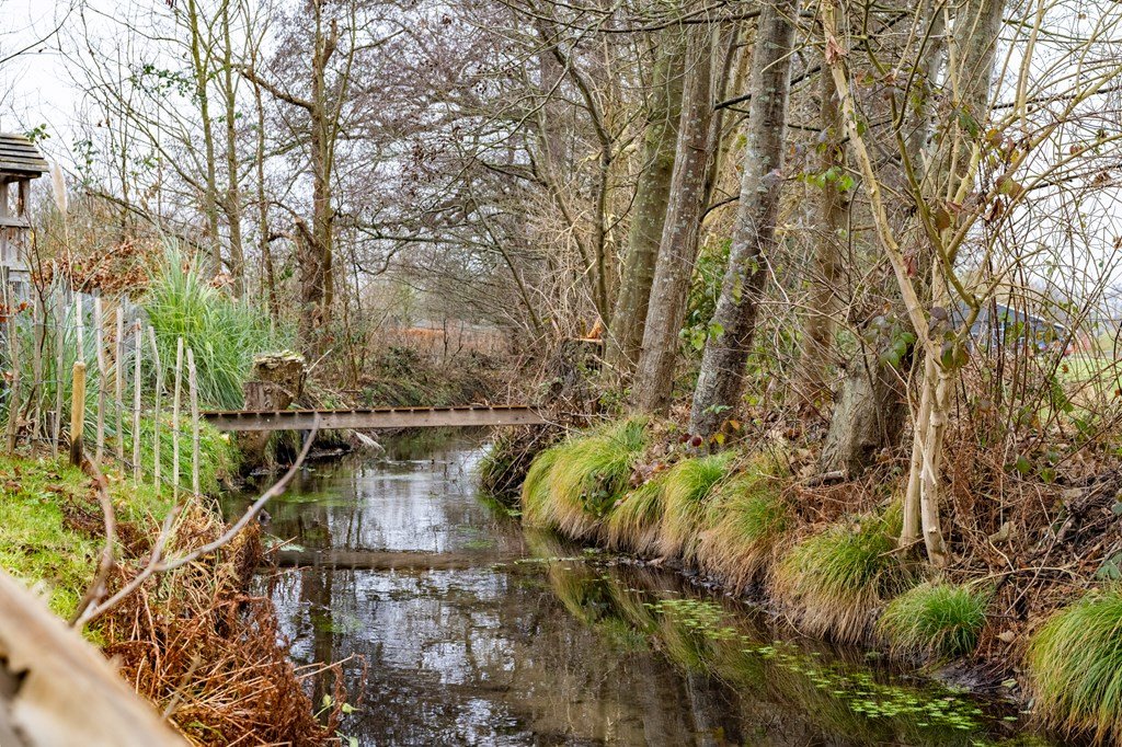 De tuin grenst aan een beekje en een agrarisch perceel – een zeldzame, vrije ligging. Parkeren is geen probleem en er is een praktische berging aanwezig.