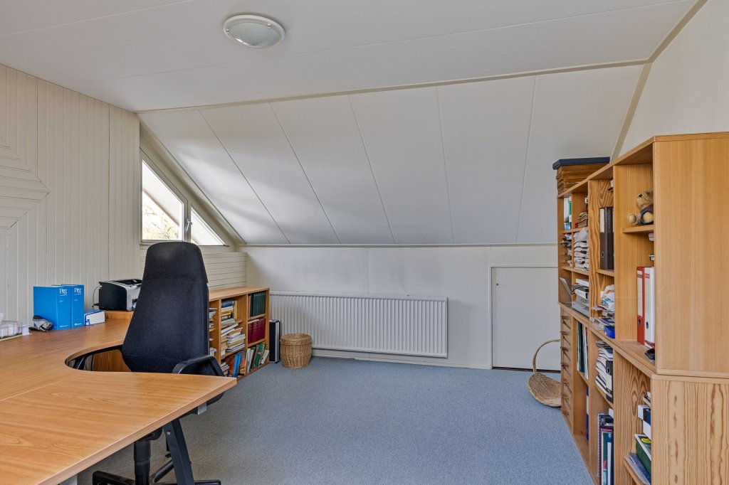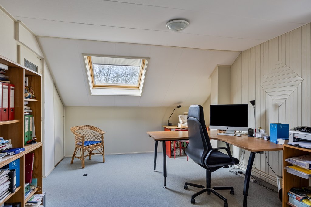 Via een vaste trap bereik je de zolderverdieping met een ruime én lichte werk- of slaapkamer en een ruimte die momenteel als bergruimte is ingericht maar waar ook een extra badkamer of toilet gerealiseerd kan worden.