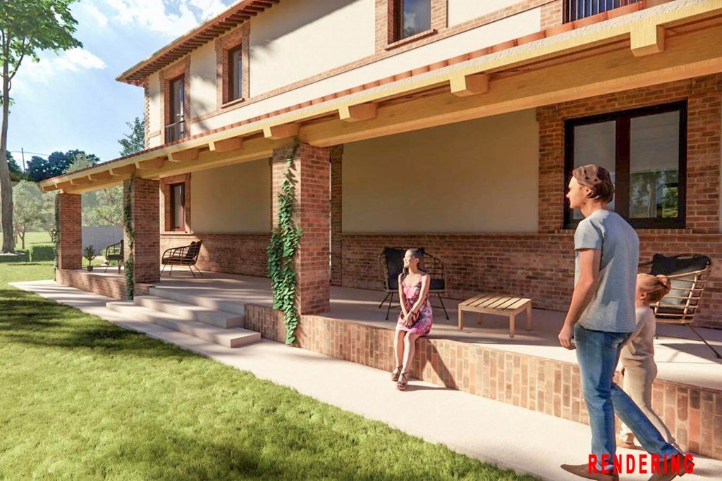 Een volledig nieuw gebouwde boerderij van baksteen en stucwerk, circa 310 m² verdeeld over twee verdiepingen, met een portiek van ongeveer 14 x 2,5 meter. Momenteel wordt het geheel opnieuw opgebouwd volgens de nieuwste aardbevingsbestendige normen.