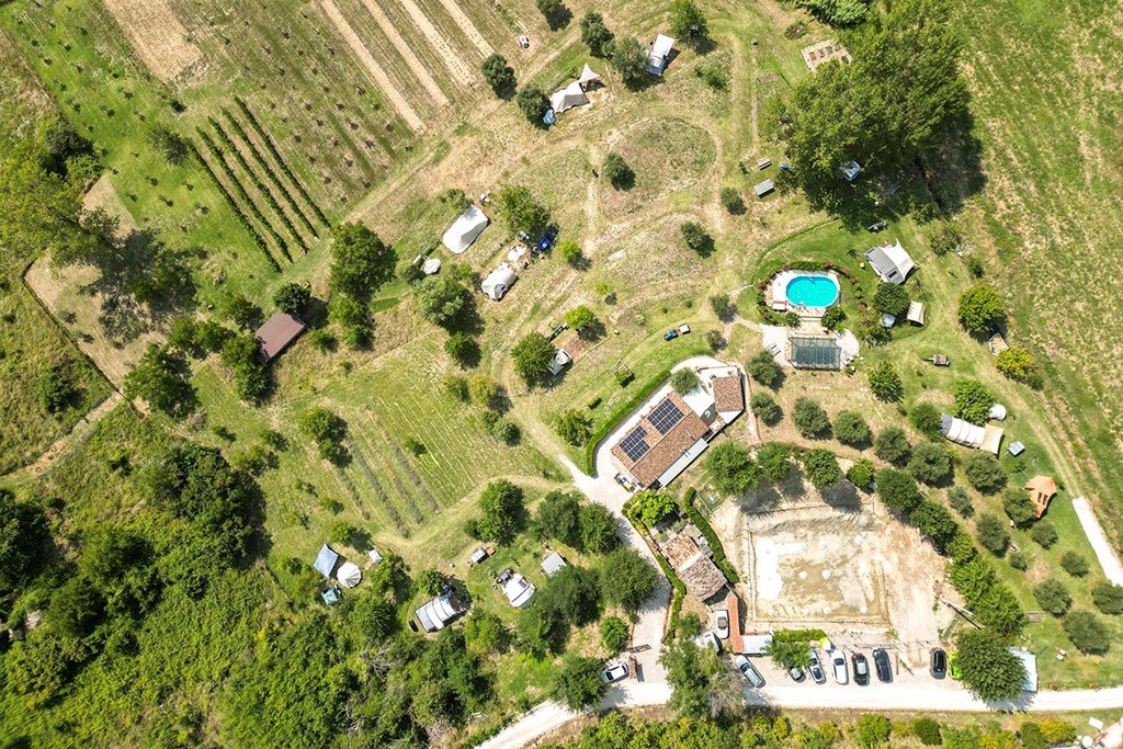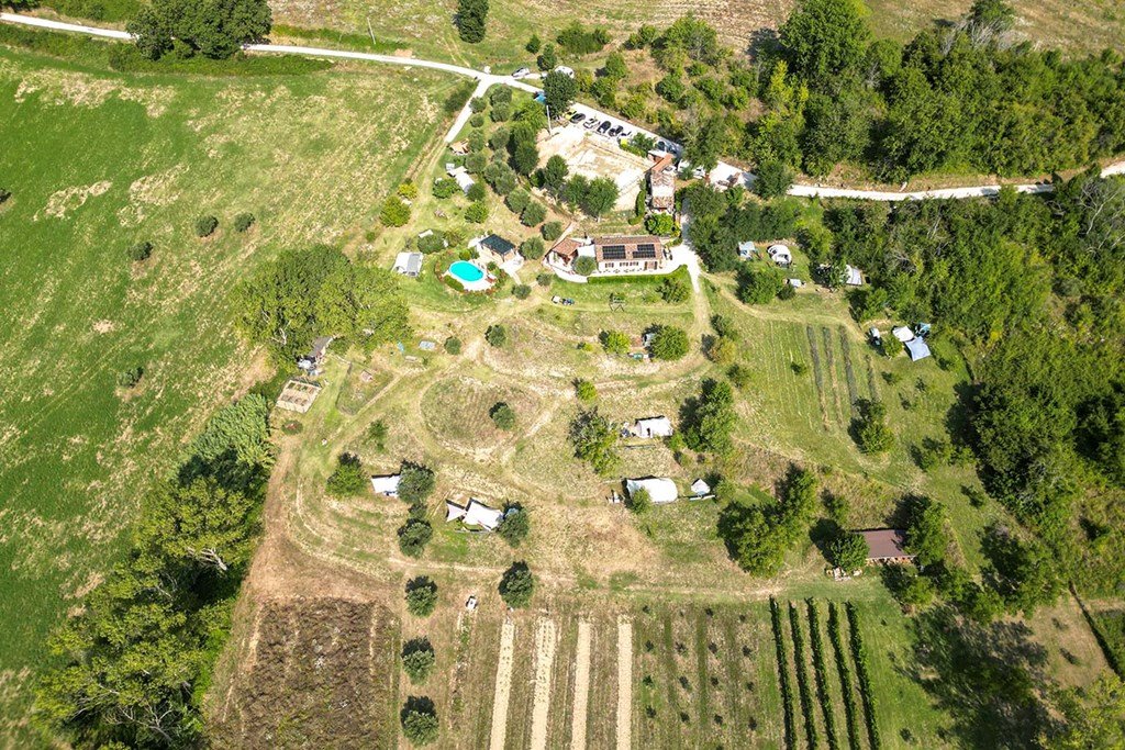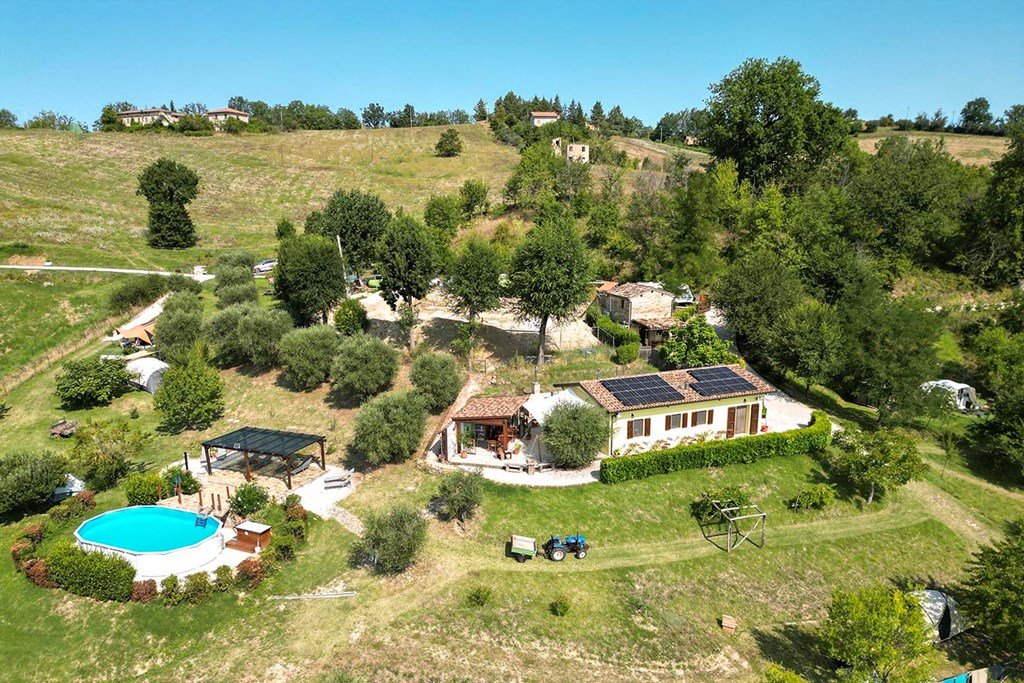 Prachtige, operationele en succesvolle agriturismo met agricamping, restaurant en biologische producten, gelegen in ongerepte natuur met adembenemend panoramisch uitzicht.