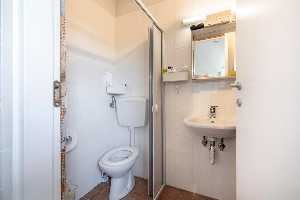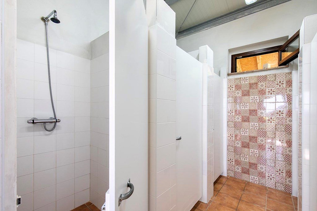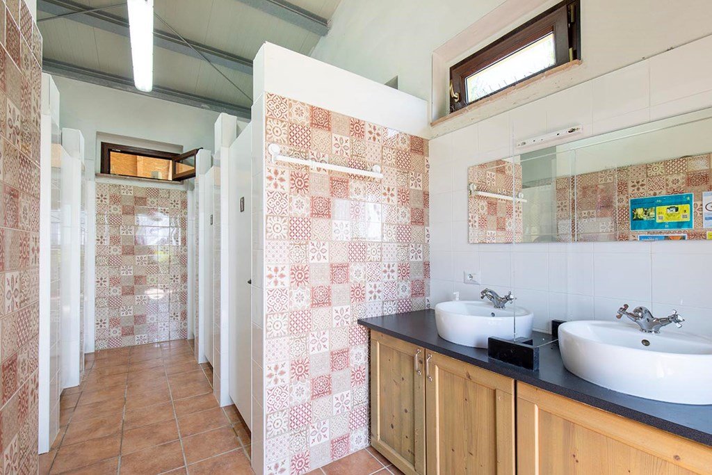 De sanitaire voorzieningen omvatten 3 douches, 3 toiletten, wastafels, een afwasruimte en een wasmachine.
