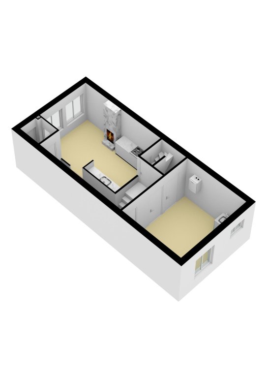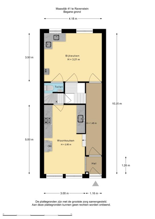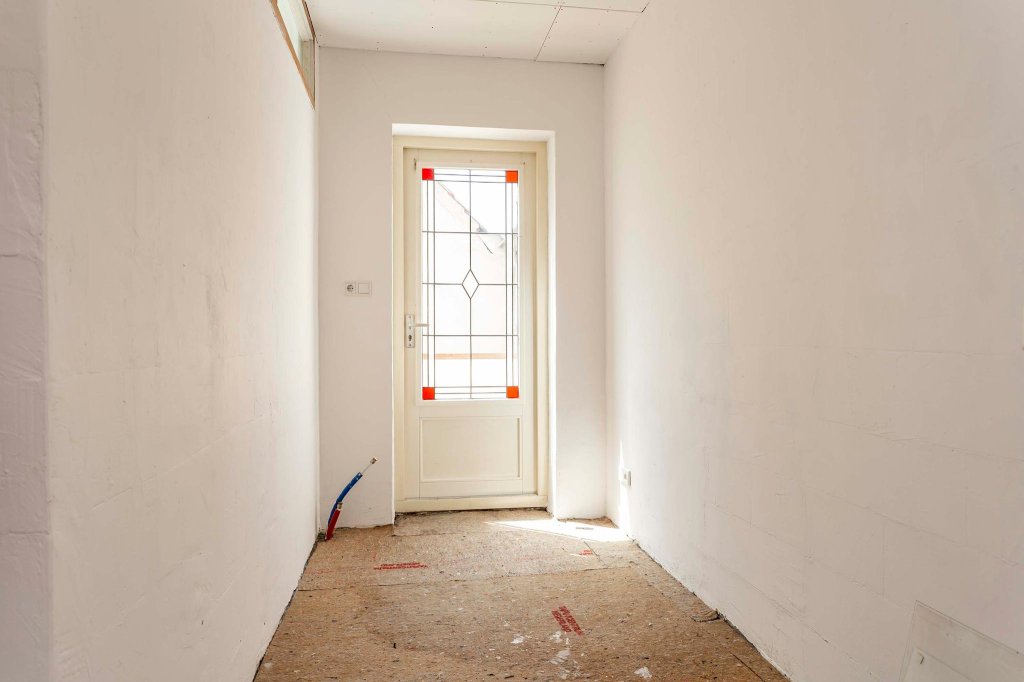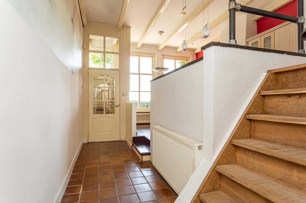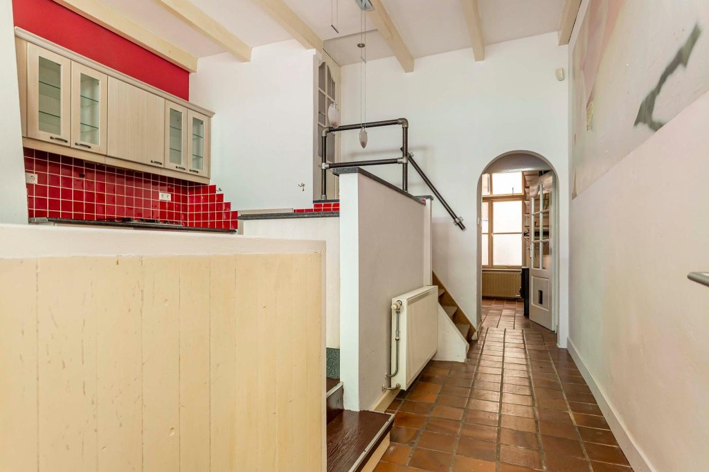 Begane grond: Hal, meterkast, royale woonkeuken met open haard, bijkeuken met toilet en toegang tot de kelders. In de bijkeuken is ook de wasmachine aansluiting.