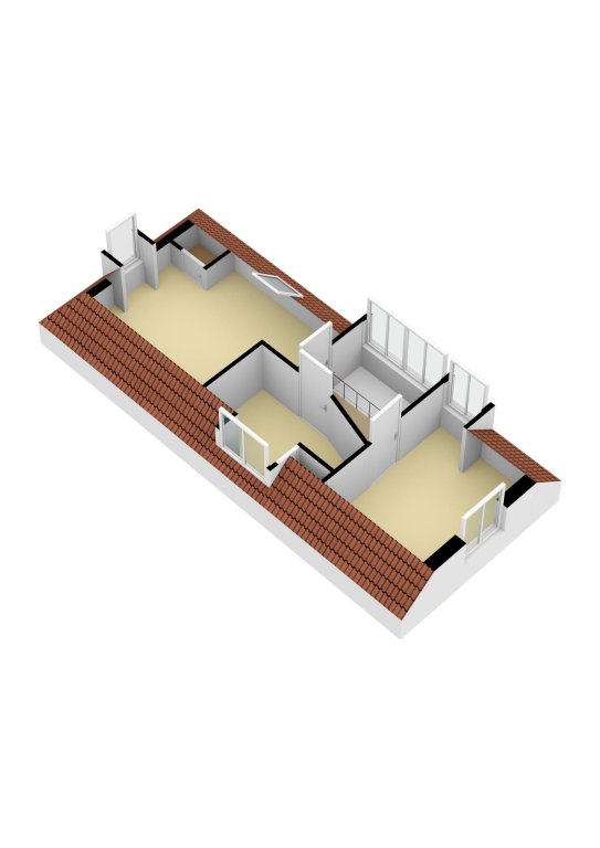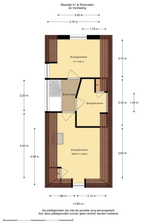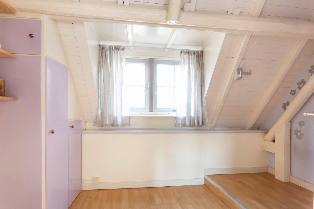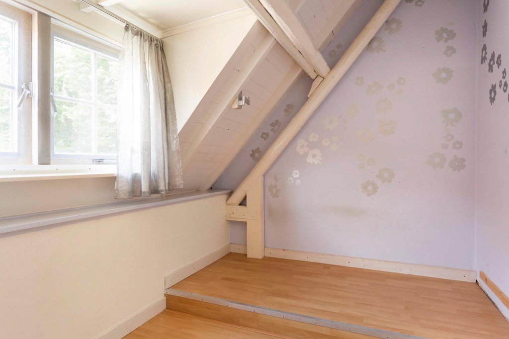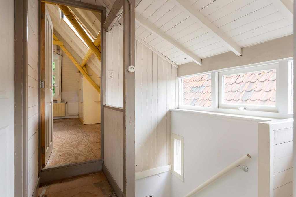 Zolderverdieping: Overloop met toegang tot 3 slaapkamers. Aan de voorkant en achterzijde van de woning royale slaapkamers met fraai uitzicht. Aan de achterkant op de daken van Ravenstein centrum. Aan de voorkant een royale kamer met dakkapel en uitzicht op de rivier de Maas. Tussen de 2 slaapkamers ligt een kleinere slaapkamer aan de zijkant van de woning.