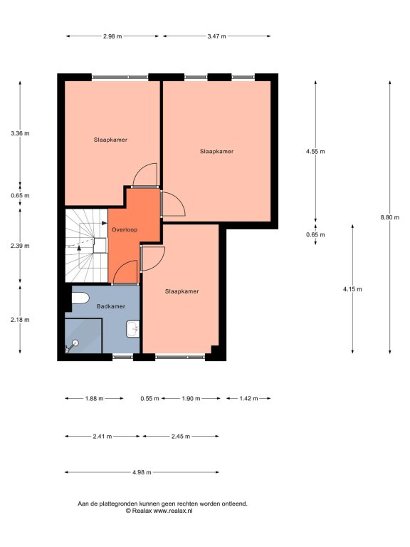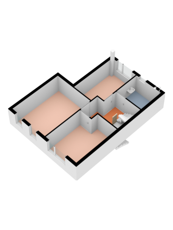 Overloop, 3 ruime slaapkamers, badkamer met inloopdouche, toilet, wastafelmeubel.
