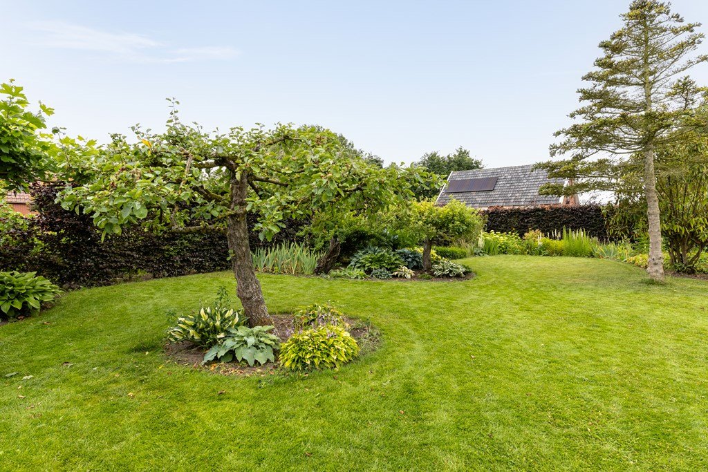 Rondom de woning is een prachtige tuin met grote kweekkas. De tuin is ideaal voor liefhebbers van natuur en buitenleven en is in verschillende delen opgesplitst. Hierdoor heb je overal weer een nieuwe kijk en maakt de tuin speels en aantrekkelijk, ook met de verschillende ornamenten. De sfeervolle vijvers vormen het hart van de tuin en trekt vogels en vlinders aan, wat zorgt voor een levendige en rustgevende sfeer. Voor de hobby tuinder is er een grote kas met fruitbomen, die perfect is voor het zelf kweken van groenten, kruiden of bloemen. Daarnaast is er een eigen waterbron geslagen voor het sproeien/watergeven in kas en tuin.