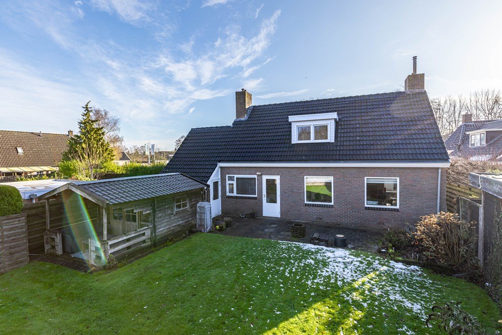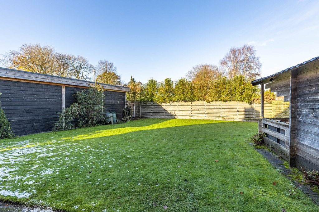 Achter de woning ligt een grote, beschutte tuin met een tuinhuis deels voorzien van een overkapping. Hier geniet je in alle rust van groen, zon en veel privacy. Een heerlijke plek voor lange zomeravonden, een moestuin, speelhoek of ontspanning.