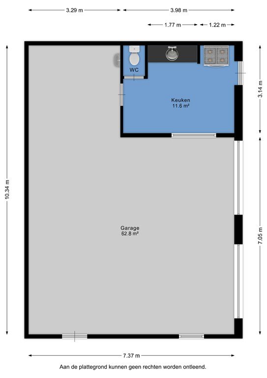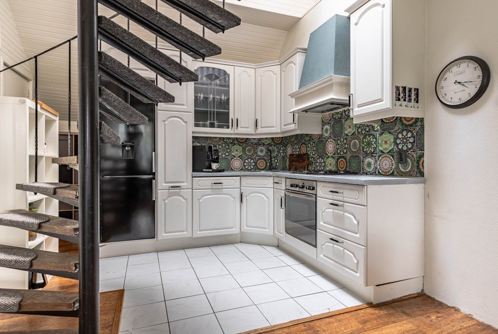 De woonkeuken biedt plek voor een royale eettafel en vormt het hart van de woning. De keuken is circa 10 jaar oud en voorzien van inbouwapparatuur van ongeveer 2 jaar oud.