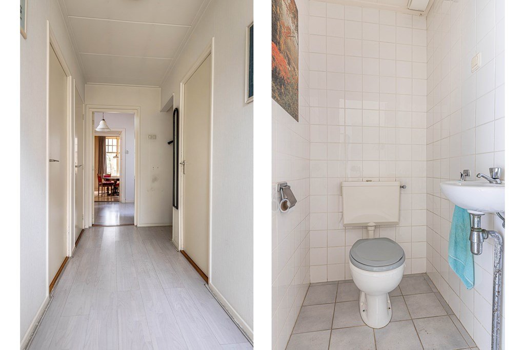 In dit deel van de woning is geen trap naar de verdieping. De zolderruimte boven het kantoor is bereikbaar via de eerste verdieping van nummer 257.