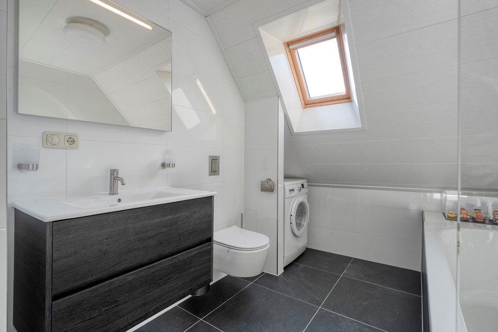 De bovenverdieping zal u positief verrassen. Hier treft u drie goed bemeten slaapkamers aan, waarvan de hoofdslaapkamer is voorzien van een zeer riante inloopkast – een droom voor iedere modeliefhebber. De badkamer is royaal opgezet, modern uitgevoerd en vormt een heerlijke plek om te ontspannen.