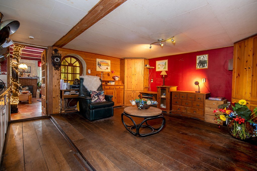 Vanuit de Dorpsstraat leiden het pad en het erf naar de entree aan de voorzijde van de woning. De kleine hal geeft direct toegang tot de ruime woonkamer, gelegen aan de voorkant van de boerderij en voorzien van een heerlijke houtkachel. Vanuit deze woonkamer betreedt u een hal/berging met een extra bergruimte aan de linkerzijde en toegang tot de kelder. Deze kleine hal geeft ook toegang tot de grote slaapkamer, ook aan de voorzijde welke is voorzien van een open haard.