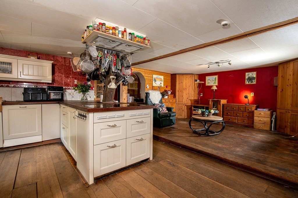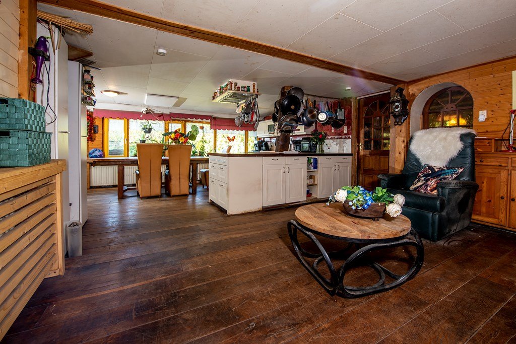 De woonkamer biedt tevens toegang tot een zeer ruime woonkeuken met eethoek en zithoek.