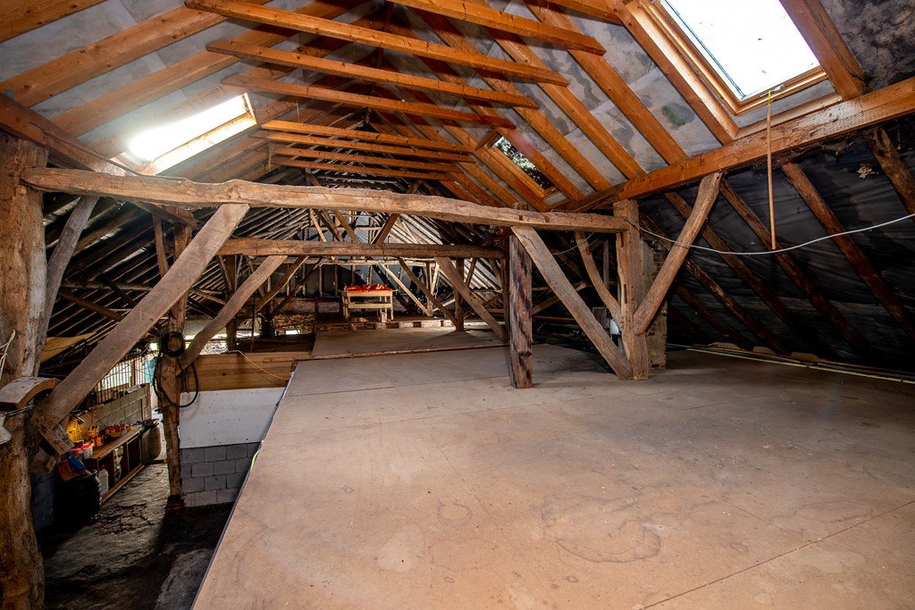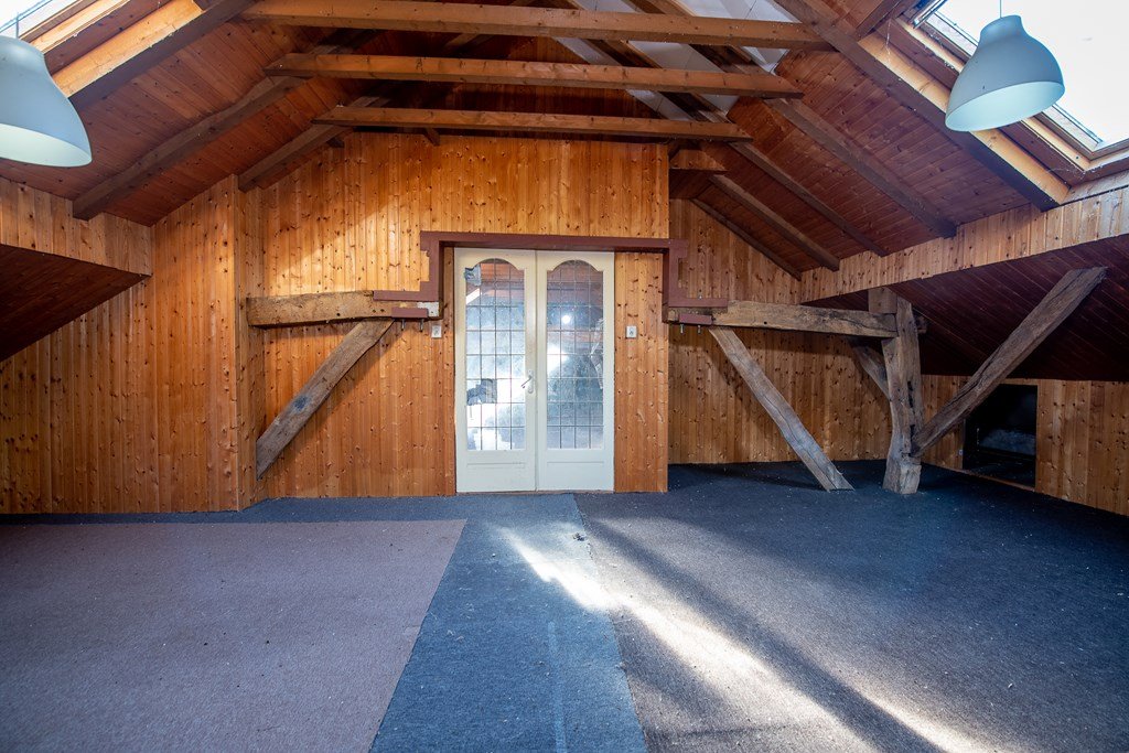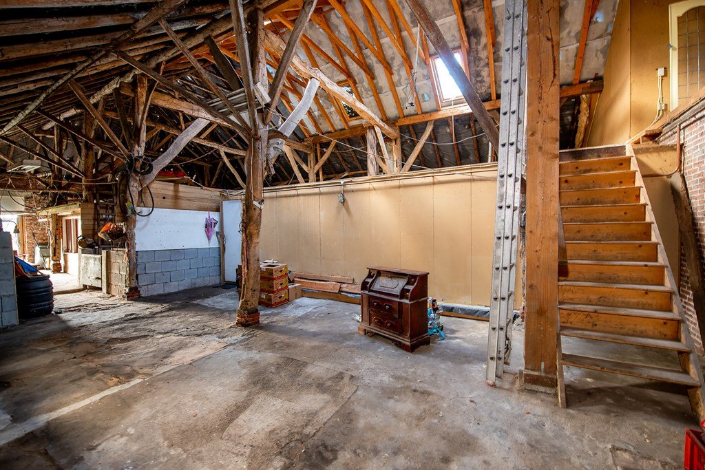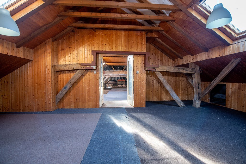 Achter in de boerderij bevindt zich een werkplaats die meteen toegang biedt tot de grote deel (schuur) met stallen en berg- en stallingsmogelijkheden. Op de verdieping van de schuur aan de voorzijde is een ruime slaapkamer gelegen met raampartijen in de gevel, een dakraam in het schuine dak en openslaande dubbele deuren die toegang bieden tot de grote zolderverdieping.