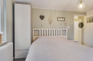 Op de 1e etage zijn 3 slaapkamers. De grootste slaapkamer heeft toegang tot een balkon. De overige 2 kamers zijn iets kleiner. Een ligt aan de voorzijde van de woning en een aan de achterzijde van de woning.