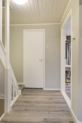 Via de keuken komt u in de bijkeuken met royale kastenwand met garderobe. Hier zijn ook de wasmachine en droger netjes in verwerkt.