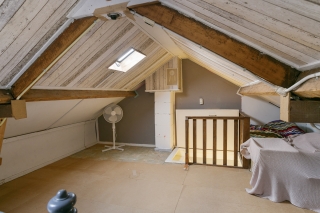 Via een vaste trap komt u via een luik op de bergzolder met 2 dakramen. Hier is ook de cv-ketel geplaatst in een afgesloten ruimte.