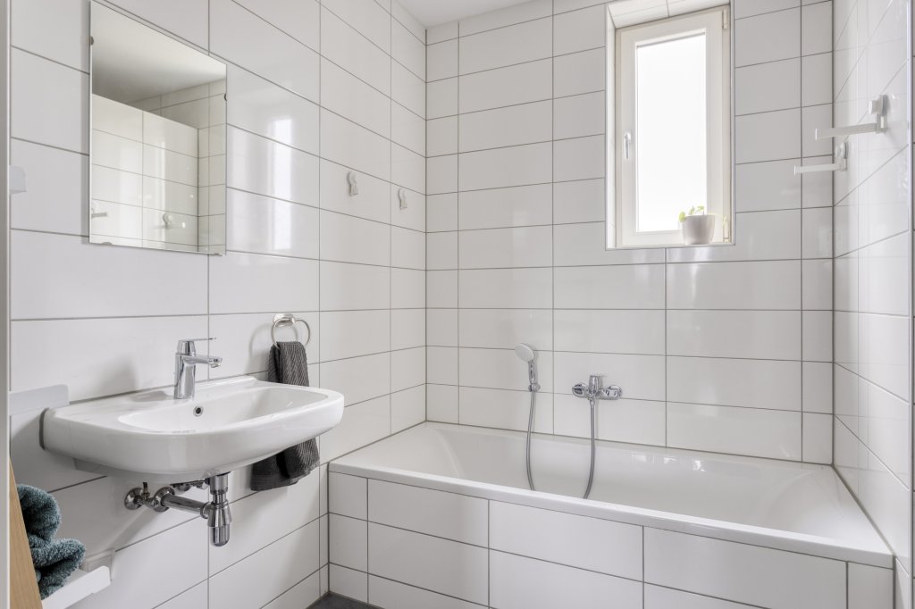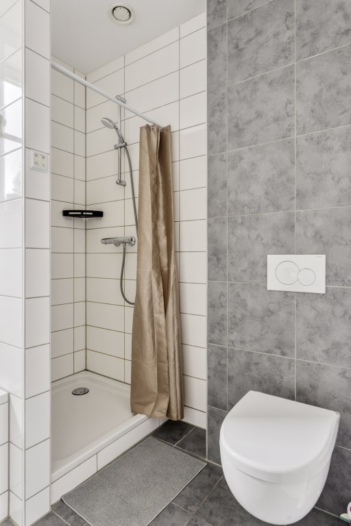 De moderne badkamer is strak en comfortabel ingericht met een ruime inloopdouche, een zwevend tweede toilet, een stijlvol wastafelmeubel en een elegante designradiator. Mechanische ventilatie en een klep raampje zorgen voor frisse lucht en daglicht. En wil je liever in bad ontspannen? Dat kan ook!