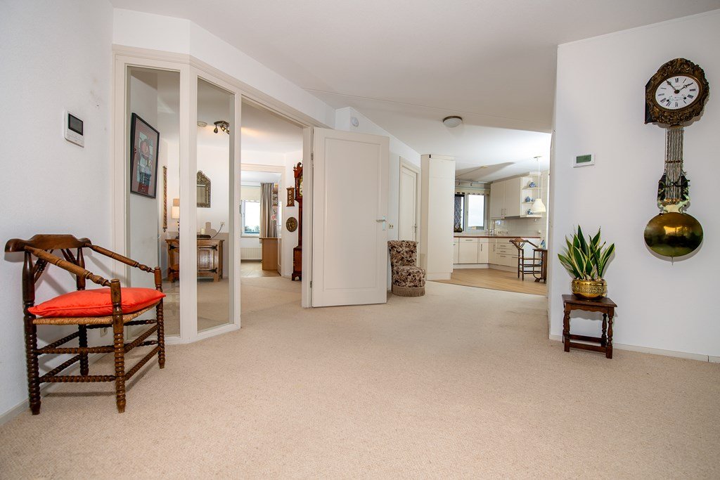 De hal leidt naar een zeer ruime living met open keuken annex eetgedeelte. De keuken is voorzien van diverse inbouwapparatuur, o.a. een AEG inductie kookplaat, afzuigkap, vaatwasser, koelkast en een Siemens oven.