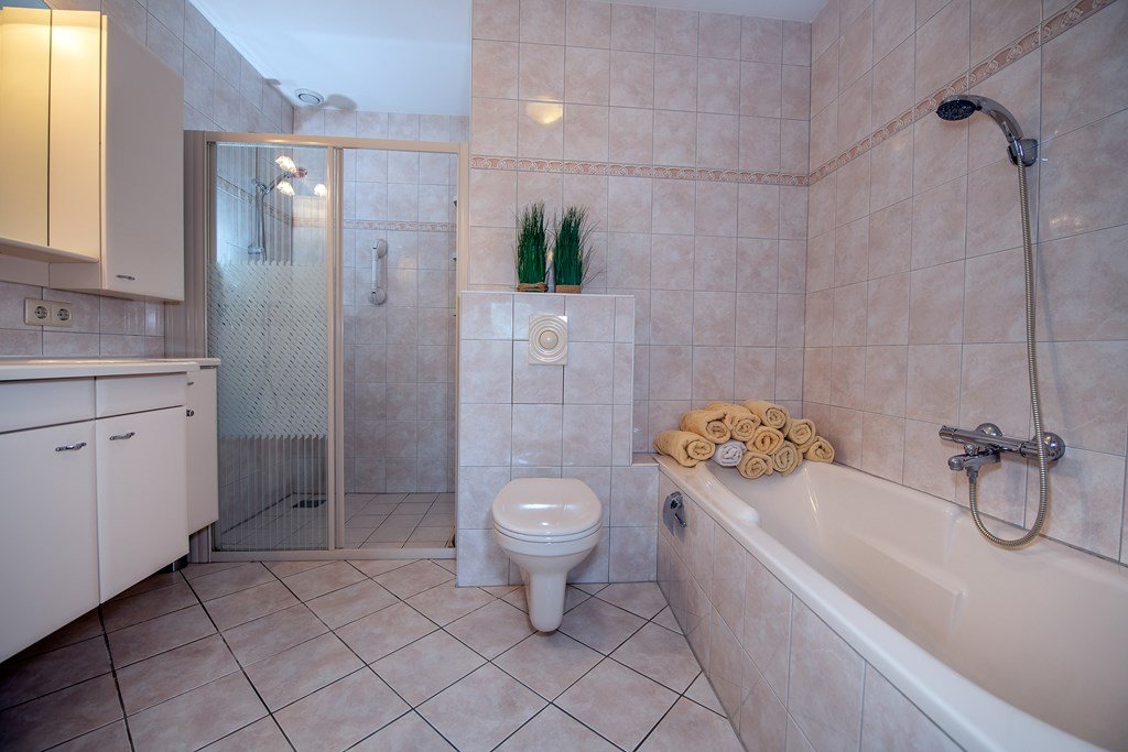 Vanuit de living heeft u toegang tot een slaap/werkkamer en de master-bedroom met een 2e eigen badkamer, voorzien van een bad, inloopdouche, toilet en wastafel.
