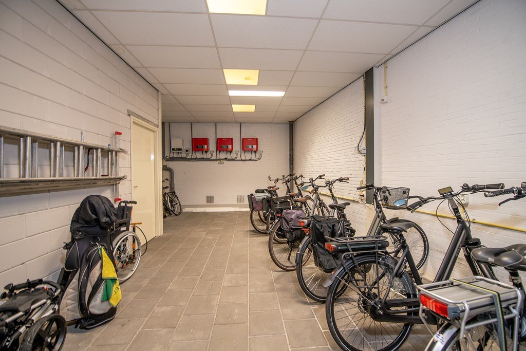 De parkeergarage is eveneens inpandig en voorzien van een elektrische toegangsdeur, te bedienen met afstandsbediening. Hier rijdt u dus droog en veilig naar binnen, zonder buitenom te hoeven. Binnen de garage bevindt zich bovendien een elektrische goederenlift én een ruime, gezamenlijke fietsenberging. Dankzij de extra afsluitbare ruimtes en de gecontroleerde toegang is de veiligheid uitstekend gewaarborgd — een prettig idee, ook bij thuiskomst in de avond.