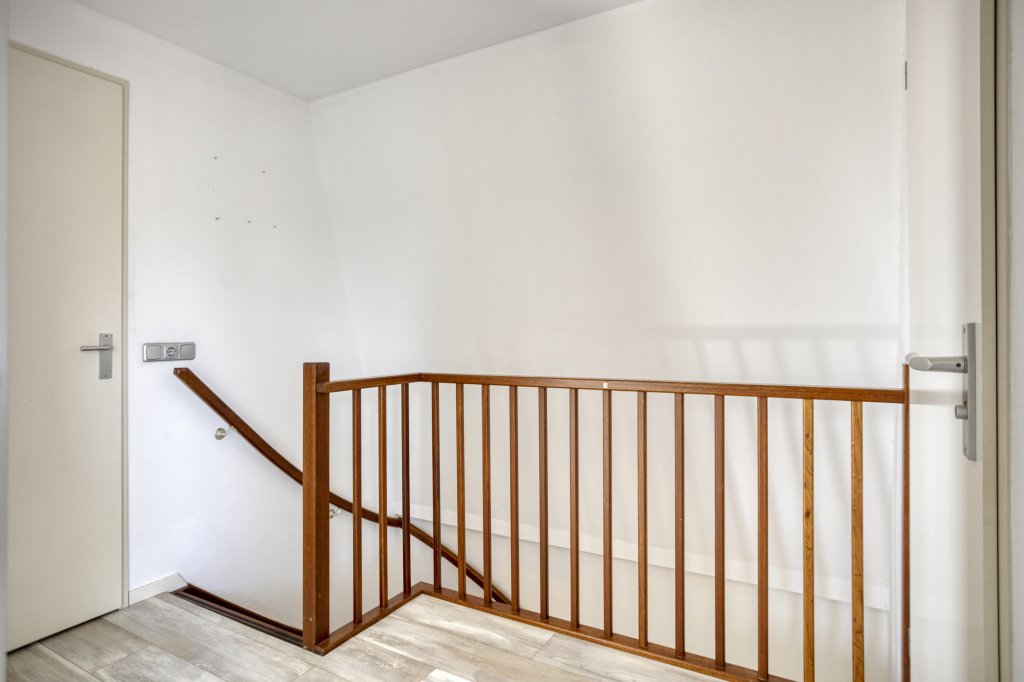 Een stijlvolle, houten trap brengt u naar de tweede verdieping. De warme uitstraling van het hout