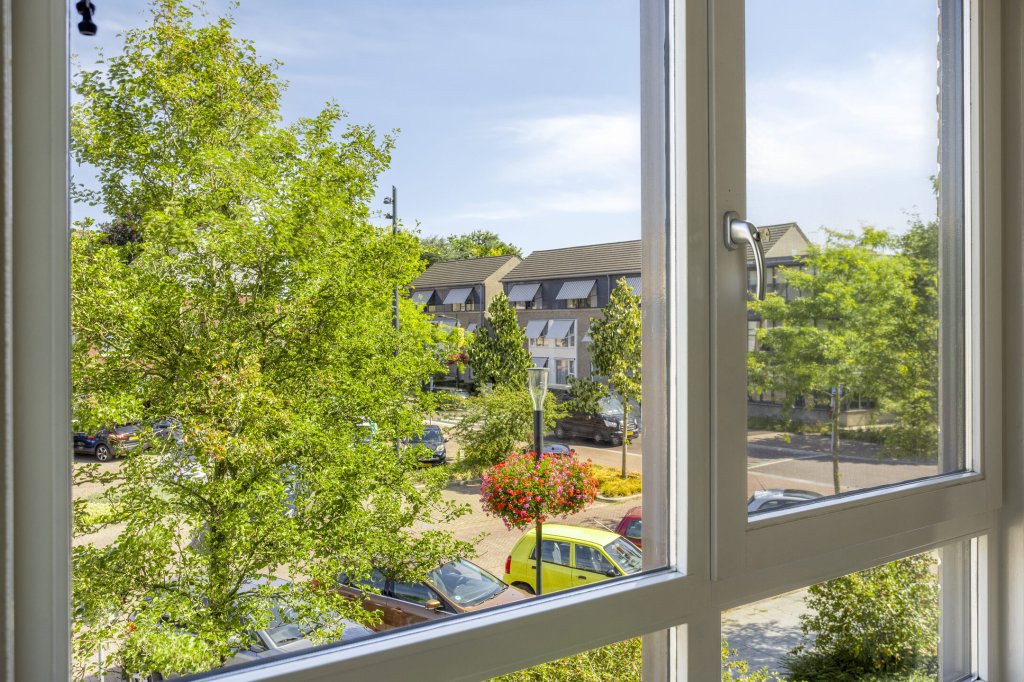 De woonkamer is het hart van de woning en valt direct op door de royale afmetingen. Er is meer dan genoeg ruimte om een comfortabele zithoek en een eettafel te plaatsen. De grote raampartijen zorgen voor een overvloed aan natuurlijk licht. Onder de trap bevindt zich bovendien een verrassend ruime berging, ideaal voor voorraad, speelgoed of andere spullen die u uit het zicht wilt opbergen.
