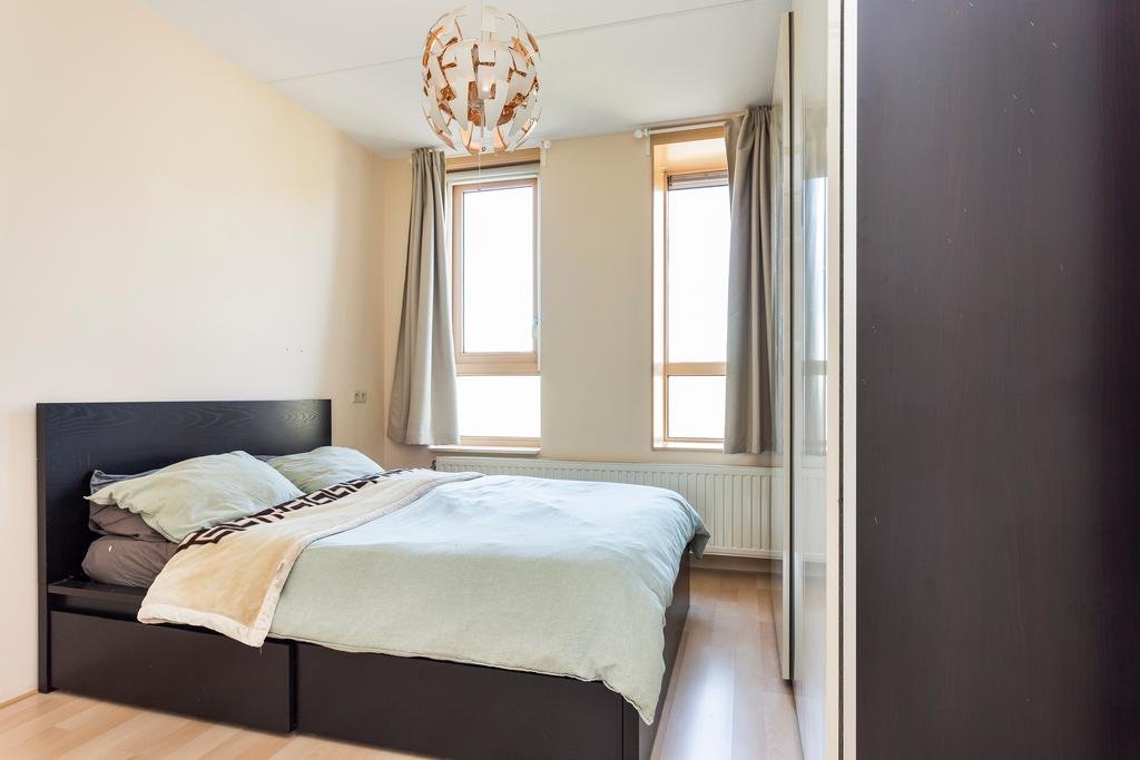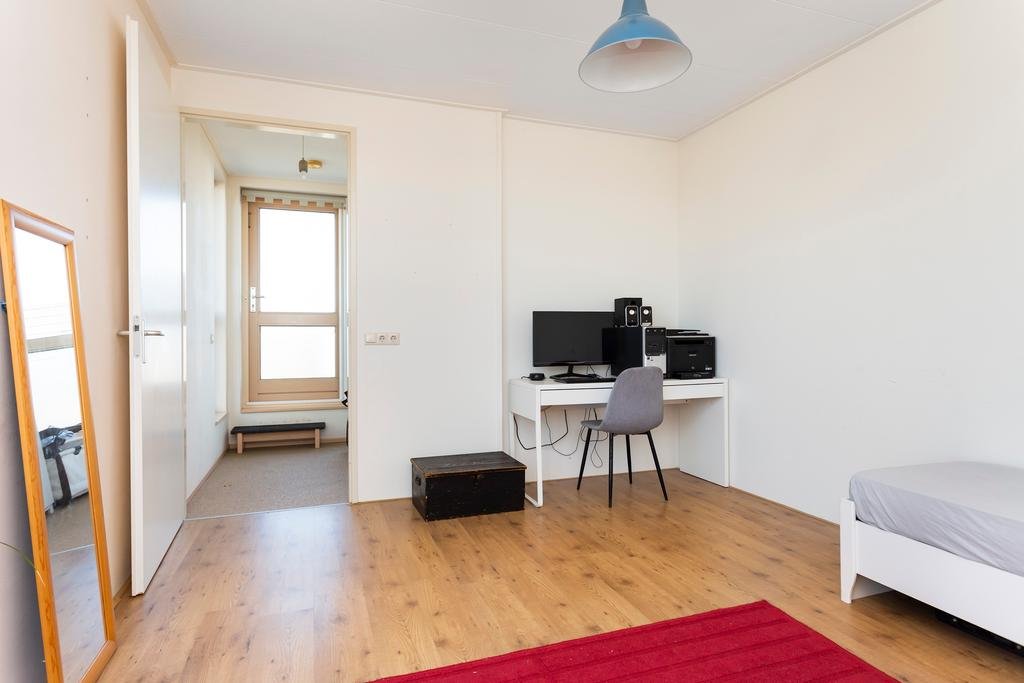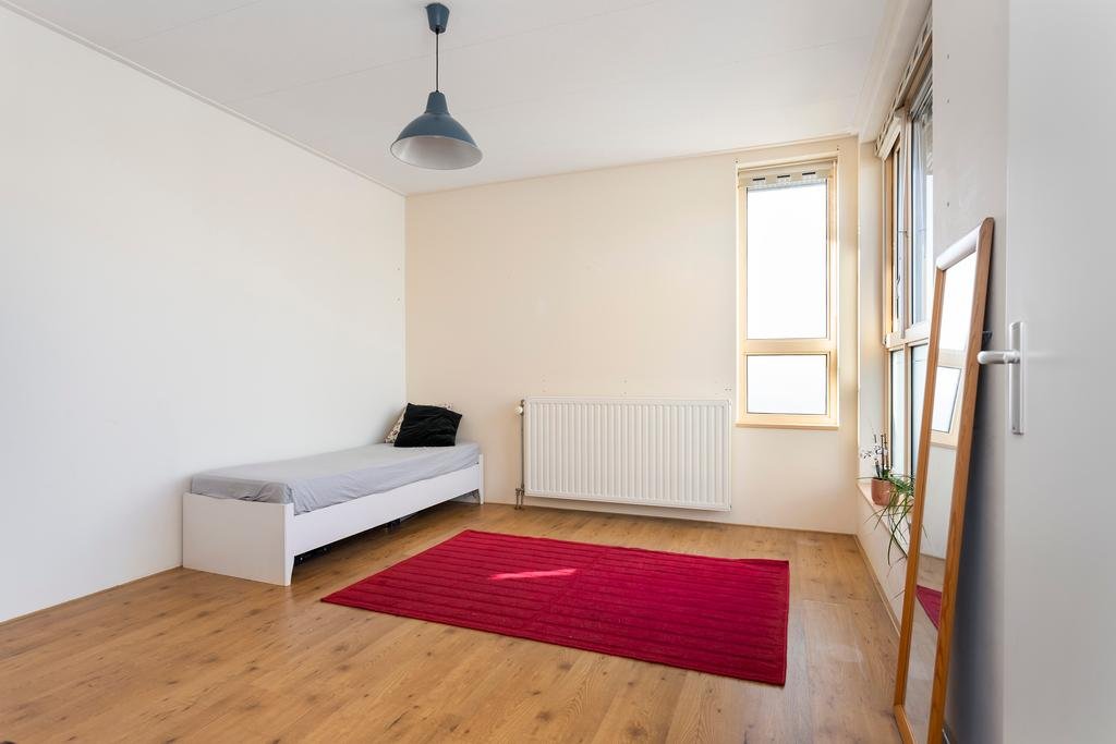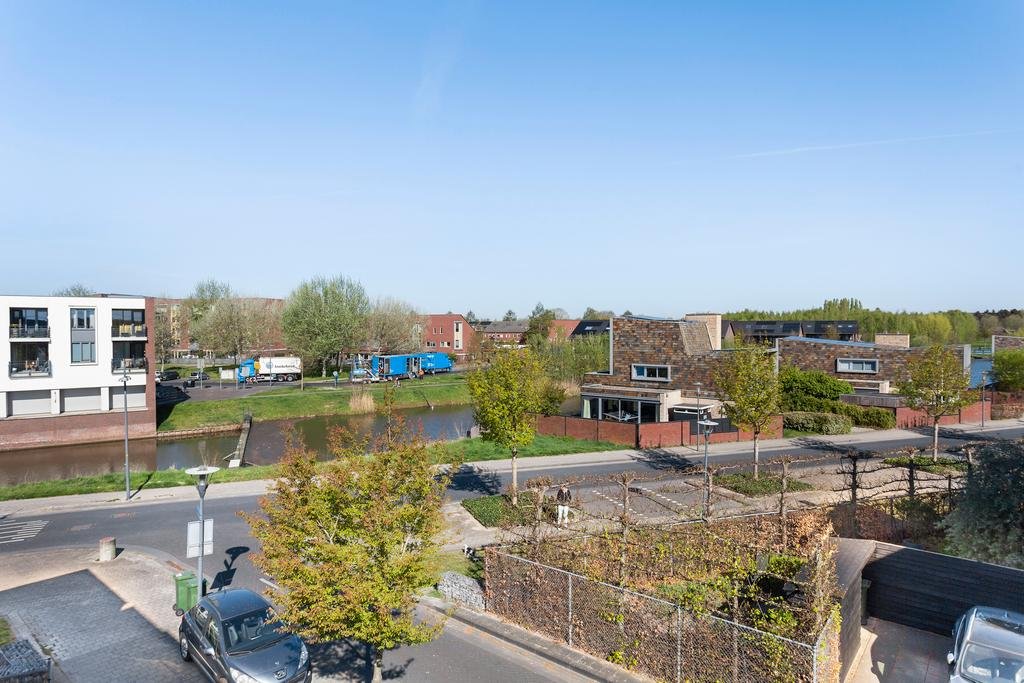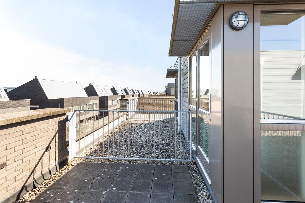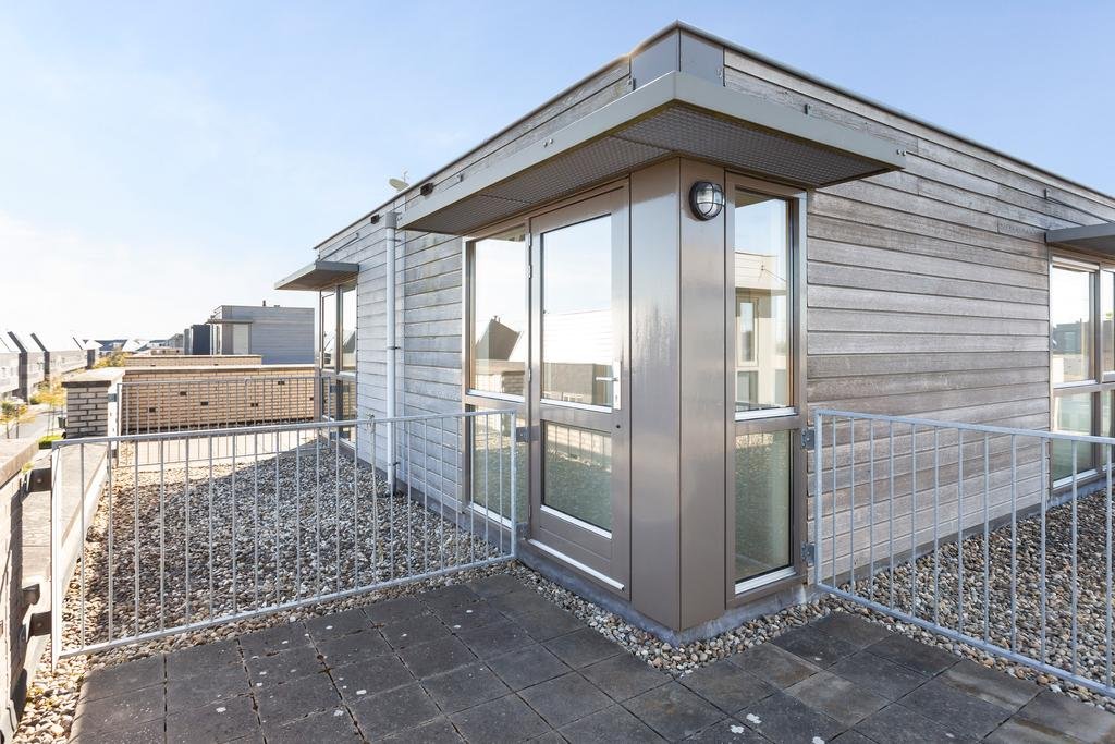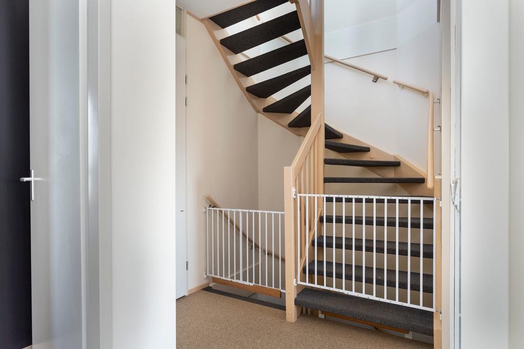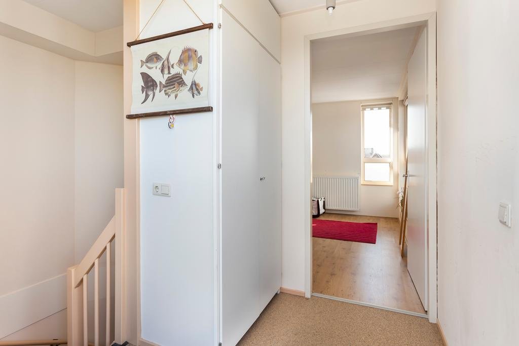 Overloop met cv ketel, 4e slaapkamer en dakterras met prachtig vergezicht over de wijk en groen.