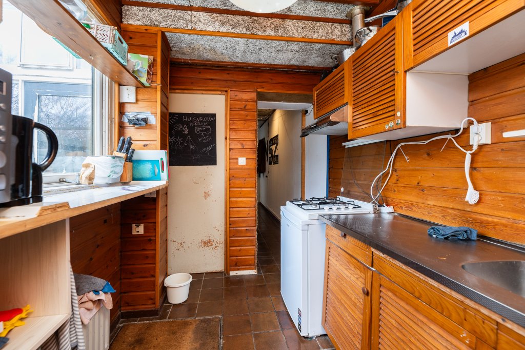 Dit is zo’n huis dat wacht op iemand met ideeën. De basis is sterk, de sfeer is er al — nu de rest nog. Je stapt de hal binnen en voelt meteen dat hier iets moois van te maken is. De lichte (woon)kamer met vide geeft direct dat warme Assendorp gevoel en de kamer aan de achterzijde kan worden omgetoverd tot tweede leefruimte, werkkamer of – voor beleggers – gewoon de volgende verhuurbare kamer (die helaas niet op de foto staat). De keuken is gedateerd, maar geeft je juist de kans om iets eigens toe te voegen. Vanuit daar loop je naar de tuin, waar de echte verrassing zit: een achterom die je rechtstreeks het Azaliapark in leidt. Dat park voelt bijna als jouw privé extra groene buitenruimte. Vanuit de keuken heb je toegang tot de kelder waar zich nu ook de CV-ketel bevindt.