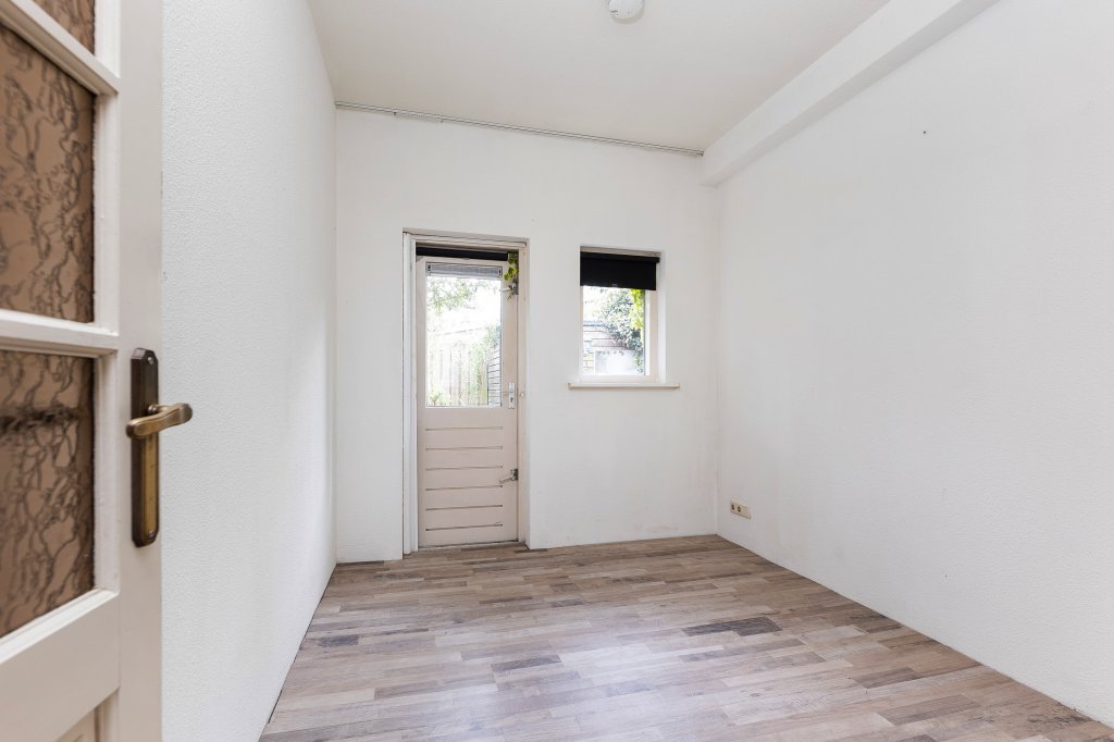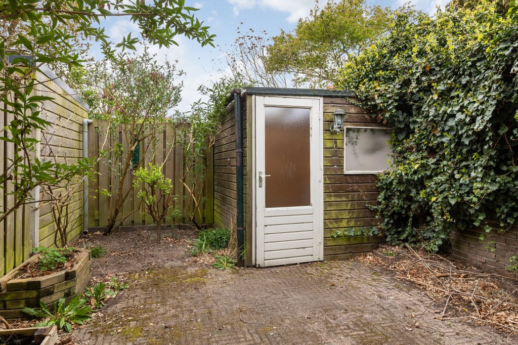 Vanuit de keuken loop je door naar de lichte slaapkamer, die directe toegang biedt tot de tuin met schuur – hoe fijn is dat! Vanuit de keuken kom je ook in de badkamer uitgerust met douche, toilet en wastafel. Daarnaast is er een praktische bergkast met wasmachineaansluiting en de CV-ketel (2016). En het wordt nóg beter: er liggen al 7 eigen zonnepanelen voor je klaar op het dak.