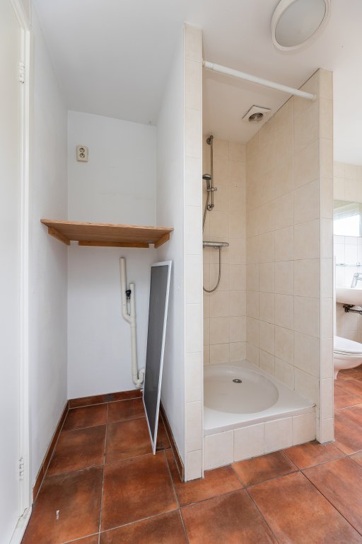 Slaapkamer & badkamer en suite: Vanuit de slaapkamer heb je direct toegang tot de badkamer, voorzien van douche, toilet, wastafel en aansluiting voor wasmachine/droger.
