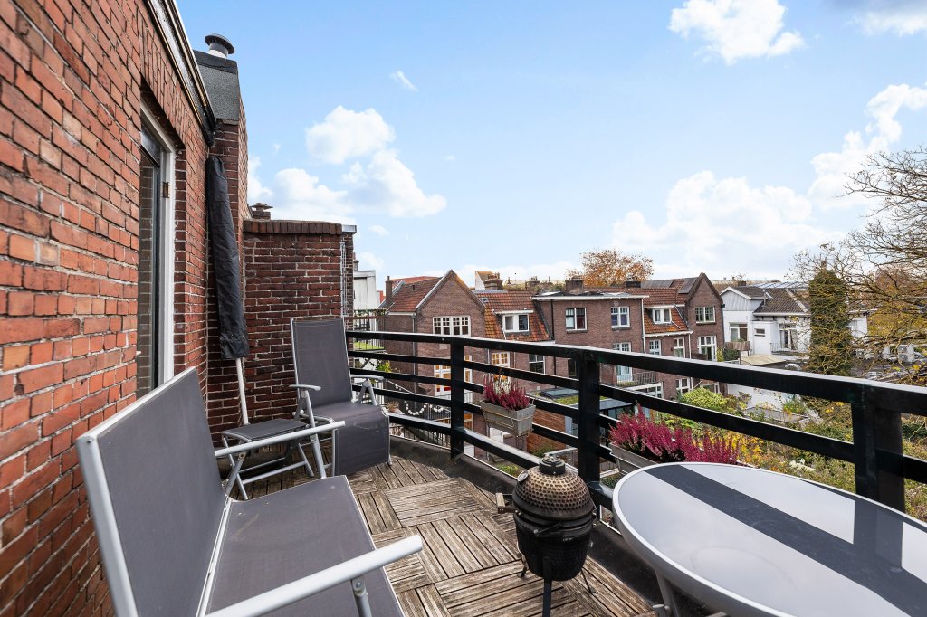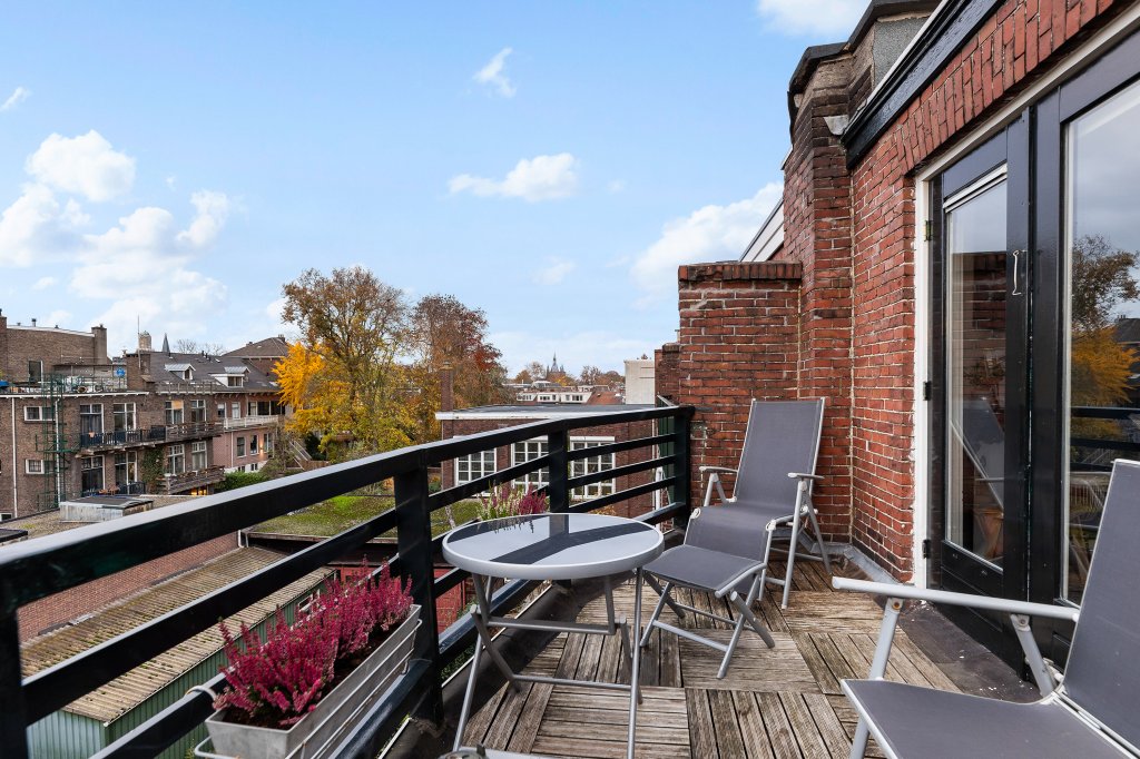 Een van de grote verrassingen van deze woning zijn de twee zonnige balkons. Hier geniet je tot in de avond van de zon, van de rust van de binnentuinen en van het uitzicht over de Zwolse daken. Zelfs de Peperbus en de Sassenpoort zijn in de verte zichtbaar – een knipoog naar de stad waar je middenin woont.